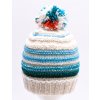 Detská pletená čiapka s brmbolcom - tyrkysovo-bielo-zelená
