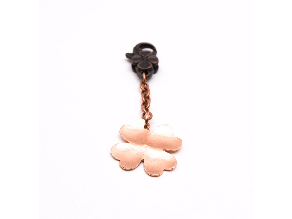 Medená ručne tepaná kľúčenka Štvorlístok s venovaním