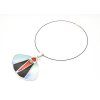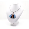 Motýľ je ručne vyrobený technikou Tiffany. Farba skla - perleťovomodrá, tmavofialová, oranžová. Nosiť ho môžete na kratšej alebo dlhšej retiazke, koženej šnúrke prípadne na kratšom oceľovom lanku, na ktorom prívesok krásne vynikne. Oceľové lanko Vám môžeme na požiadanie pribaliť k prívesku.
